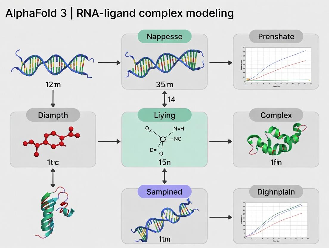 Ligands: In the context of AlphaFold 3, ligands are small molecules (e.g., drugs, metabolites, ions) that bind to biological macromolecules like RNA. Unlike previous versions, AF3 can explicitly model these small molecules as part of the input, allowing for the prediction of their binding interactions without requiring a pre-defined template.