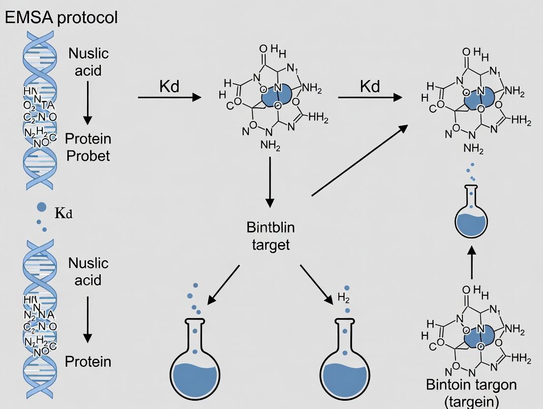 The EMSA protocol remains a powerful, accessible, and cost-effective cornerstone for quantitatively determining the dissociation constant (Kd) of protein-nucleic acid interactions. By understanding its foundational principles, meticulously executing the quantitative workflow, and adeptly troubleshooting common issues, researchers can extract robust and meaningful affinity data. While techniques like SPR and ITC offer advantages in kinetics or thermodynamics, EMSA's unique ability to resolve complexes based on size and shape, coupled with its suitability for low-abundance proteins and complex mixtures, ensures its enduring relevance. As we advance into an era of high-throughput screening and structural biology, the validated Kd values derived from well-executed EMSA experiments will continue to be critical for mapping regulatory networks, characterizing disease-associated mutations, and rational drug design targeting previously undruggable nucleic acid interfaces.